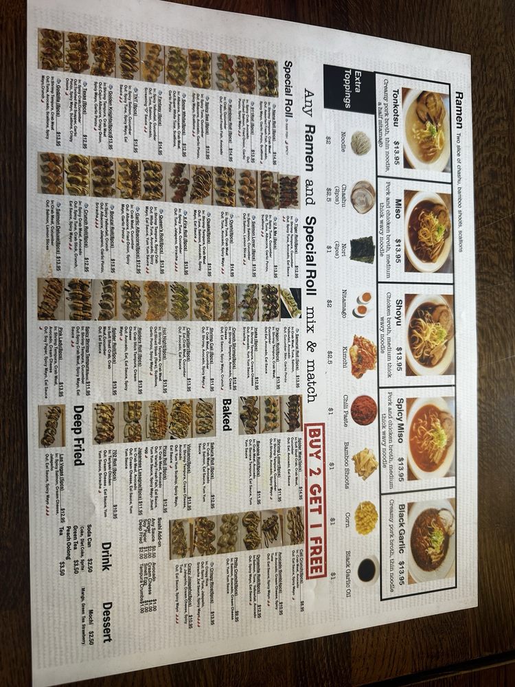 Creamy pork broth, thin noodleTwo slice of chashu, black mushrooms, bamboo shoots, scallions